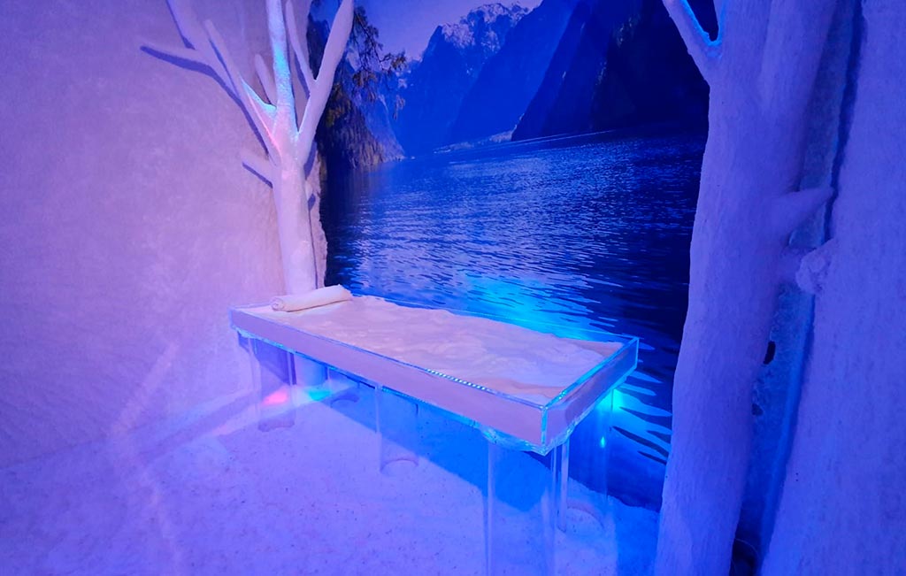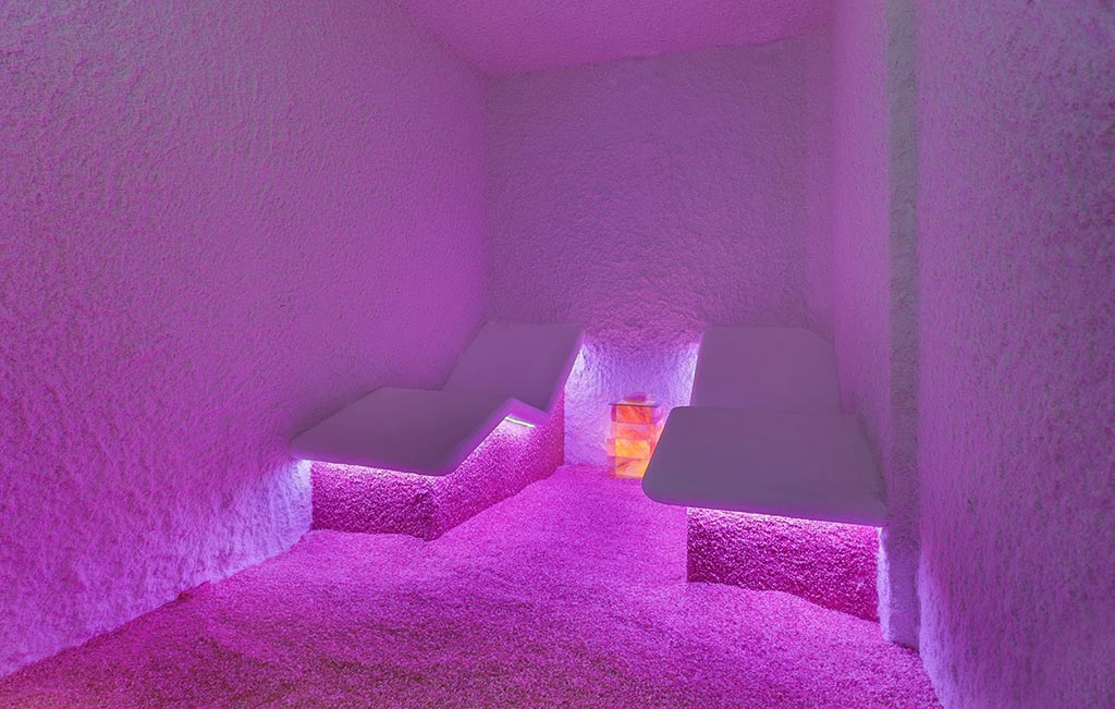 La haloterapia consiste en respirar un ambiente saturado por micropartículas de sal de origen mineral, que proporciona importantes beneficios a las personas con problemas respiratorios, dermatológicos y estrés. Las partículas que se depositan en la piel ayudan a equilibrar el pH a la vez que activan los procesos de reparación y regeneración de la piel. Esto hace que se estimule el crecimiento celular y la microcirculación y, al mismo tiempo, se fortalece el sistema inmunológico. Además de estos beneficios, ayuda a nuestra salud mental y emocional gracias a la generación de iones negativos que contrarrestan los iones positivos de los dispositivos electrónicos que usamos a diario.