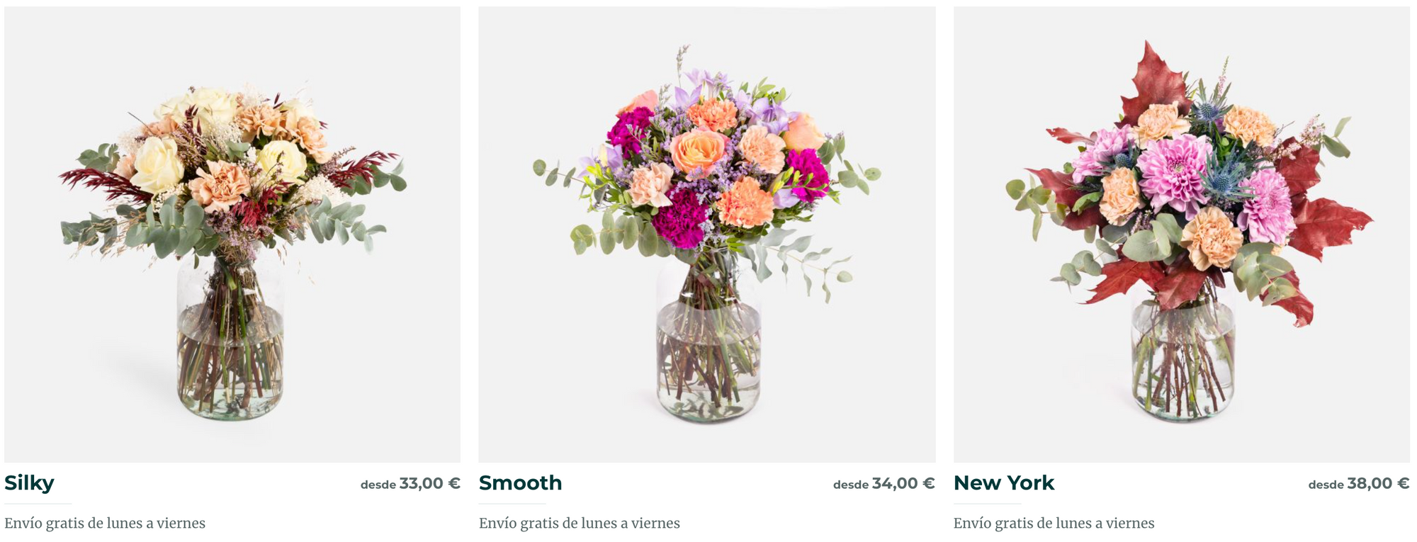 Para esta temporada de otoño, han creado varios ramos y plantas de otoño para conectar en la naturaleza. Podéis ver todos los nuevos ramos AQUÍ. Nos han encantado los ramos Silky, Smooth y New York que podéis ver sobre estas líneas.