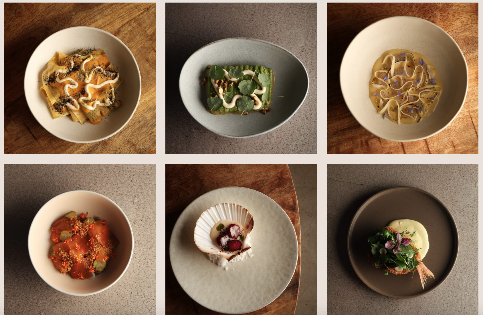 Algunos de sus platos más originales son, por ejemplo, "Puerro, Pesto de Rúcula, Parmesano, Pistacho", "Salmonete alla Milanese, Anticuchera, Kaffir, Parmentier", "Pappardelle, Loche, Queso de Cabra, Vainilla", o "Tartar de Venado, Ají Amarillo, Yema".